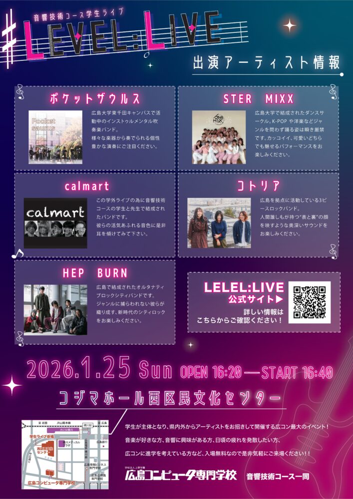 音響技術コース学生ライブ『LEVEL :LIVE』
